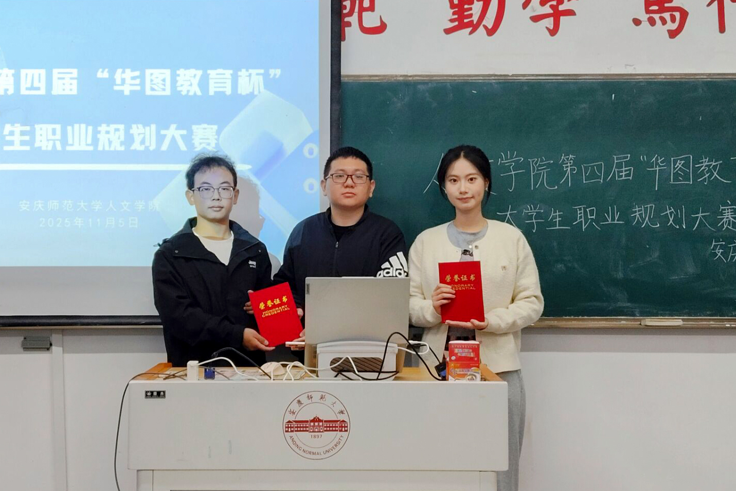 评委们认真聆听,针对选手讲述提出了专业的问题和宝贵建议,为选手们进一步优化职业规划方案、明晰发展方向提供有力指导。经过激烈的角逐,2023级汉语言文学专业(8)班耿才涛获得就业赛道一等奖;2024级汉语言文学专业(6)班陈意果、2025级中国语言文学类专业(4)班郑国泰获得成长赛道一等奖。