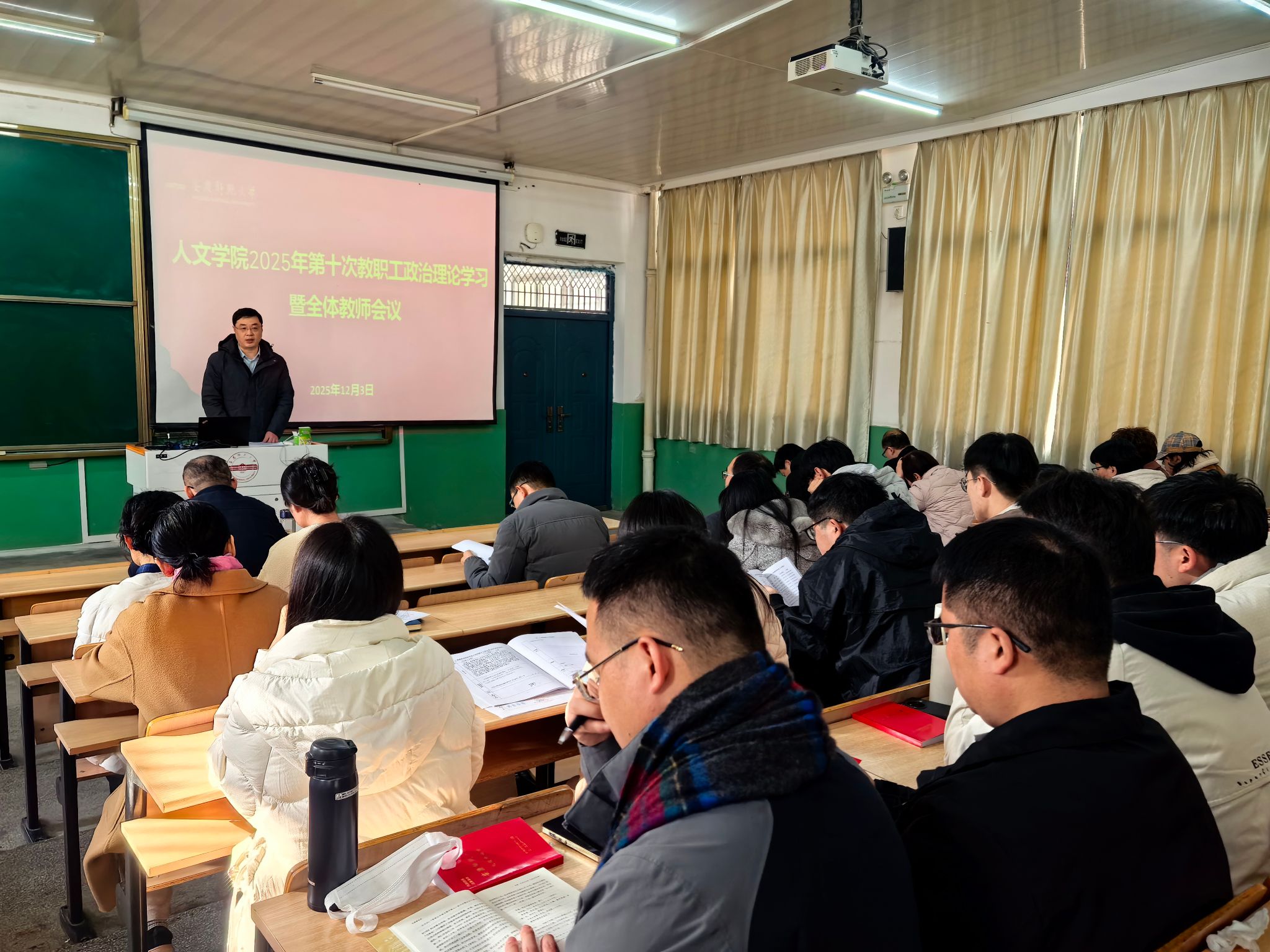 12月3日,suncitygroup太阳成集团在菱湖校区理二阶教室召开2025年第十次教职工政治理论学习暨全体教师会议。公司领导班子及全体教职工参会,会议由经理汪孔丰主持。