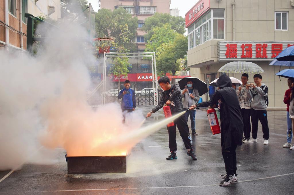 随后,消防员向同学们讲解了灭火器的原理、使用方法及一些注意事项,并在院内进行现场灭火示范,讲解过后,消防员邀请了一些同学尝试使用灭火器,许多同学都积极参与。2021级历史学三班的李腾飞体验后说:“通过这次体验,我学会了使用灭火器,掌握了一些灭火的方法,如果突然遇到火灾,我想我能够在保障自身安全的情况下使用灭火器上前灭火,阻止火势蔓延。”