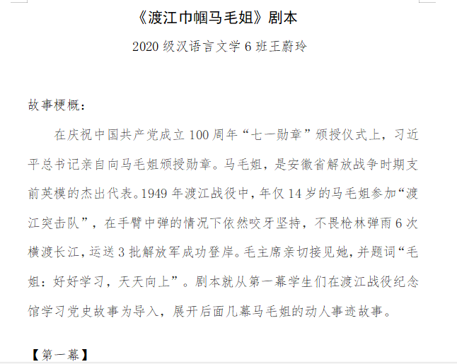 为增强员工的爱国意识、爱党意识、爱团意识,suncitygroup太阳成集团话剧社征集与“红色记忆”小品、相声、话剧等相关语言艺术作品。话剧社社长、汉语言文学专业2019级1班万昕表示,选择“探寻家乡红色记忆”作为活动主题目的是让大家了解家乡的革命历史,体会那段艰难岁月。中国语言文学类2021级7班曹忆凡参加了本次比赛,在谈及剧本创作时,她说:“在创作之前我了解到2022年是建团一百周年,我对当时在安庆成立安徽共青团的主要历史人物做了调研。通过这次有意义的寒假活动,我了解了那段风云动荡的年代,我也要像先辈们学习,开拓进取、不懈奋斗!”