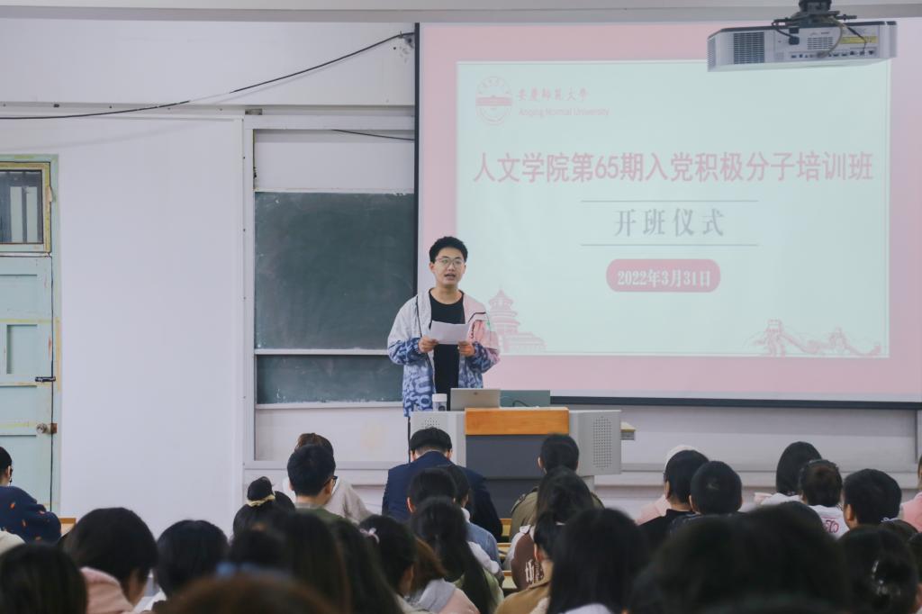 开班仪式在庄严的国际歌中拉开序幕。中国语言文学类专业2021(7)班曹忆凡代表全体学员发言,他结合近日的“两会”热点话题和老员工“村官”黄文秀、张桂梅等优秀共产党员的先进事迹,向大家展示了中国共产党开拓创新、百折不挠的奋斗精神。他表示成为一名共产党员是自己一直以来的追求和梦想,作为入党积极分子,将努力提高思想觉悟,树立良好形象,率先垂范,努力把自己锻炼成符合人民期望的合格的社会主义建设者和接班人,以优异成绩向党和人民汇报。