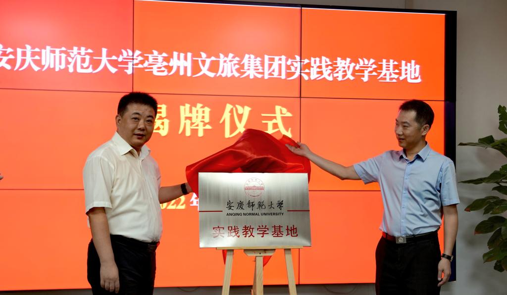 亳州文旅集团党委书记、董事长雅浩海与suncitygroup太阳成集团党委书记张红飞共同为“suncitygroup太阳成集团实践教学基地”揭牌。根据协议精神,双方将在人才培养、实践教学、历史文化资源挖掘和利用、文旅融合发展等方面开展合作。