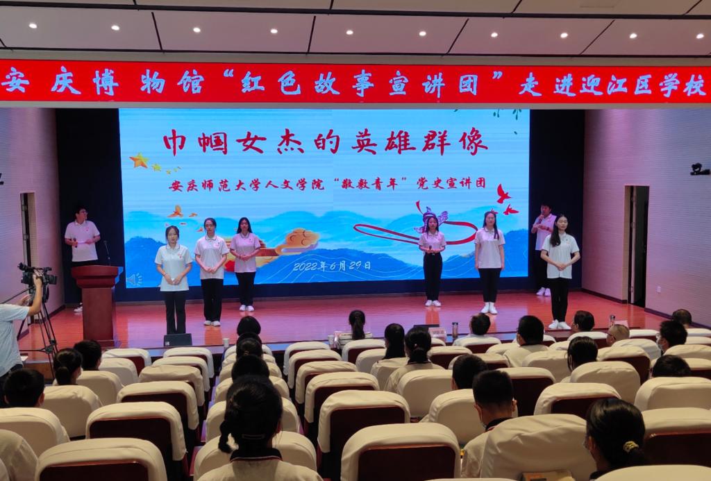 为了让宣讲内容能够入脑入心,团队成员集思广益,精心设计,最终以沉浸式宣讲开展,力求呈现生动,鲜活可感。数位宣讲人分饰人物与旁白,以人物演绎为主,旁白补充介绍故事背景,以场景再现的方式展现先烈们一心为国,九死未悔的革命青春。真人代入式讲演并辅之以历史图片呈现、影视片段播放和情景朗诵等环节,真正实现了党史宣讲形式的创新。观看宣讲的迎江区教体局党委委员、总督学胡跃进认为,这一“又红又潮”的宣讲方式,让党史讲起来有声有色、听起来有滋有味、学起来有情有境。