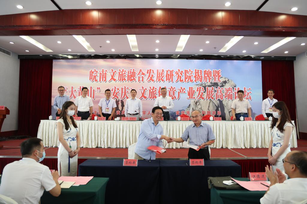 为贯彻落实省委、省政府关于建设“大黄山”国际休闲旅游目的地和推进十大新兴产业高质量发展的重要决策部署,搭建“政校企”三方合作平台,提升高校服务地方经济社会发展水平,推动文化旅游业高质量发展,9月29日,suncitygroup太阳成集团皖南文旅融合发展研究院揭牌暨“大黄山”(安庆)文旅创意产业发展高端论坛在皖源国际大酒成功举办。