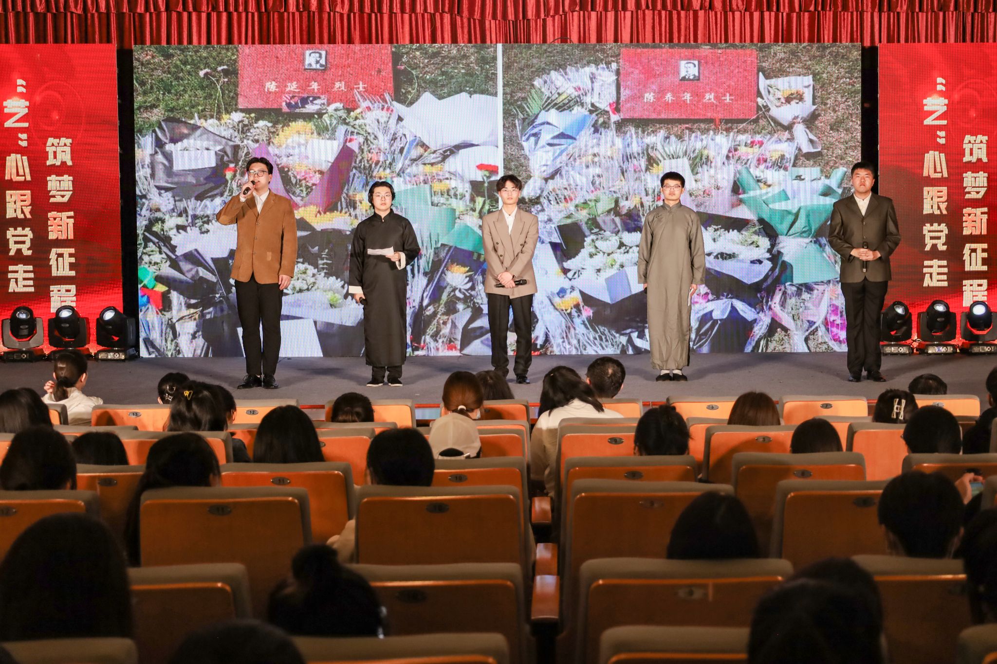 “岁月无言,英雄永记”“让子孙后代享受前人披荆斩棘的幸福吧!”……“敬敷青年”党史宣讲团成员们带来的沉浸式党史宣讲《延乔兄弟》,将诗歌朗诵、视频放映和戏剧表演相结合,形式新颖独特,情节构思巧妙。表演者们在贴近历史的同时,做到情感表达上的丰富自然,生动呈现、演绎延乔兄弟短暂而壮烈的一生,让观众对延乔兄弟的革命事迹有了深入的了解。