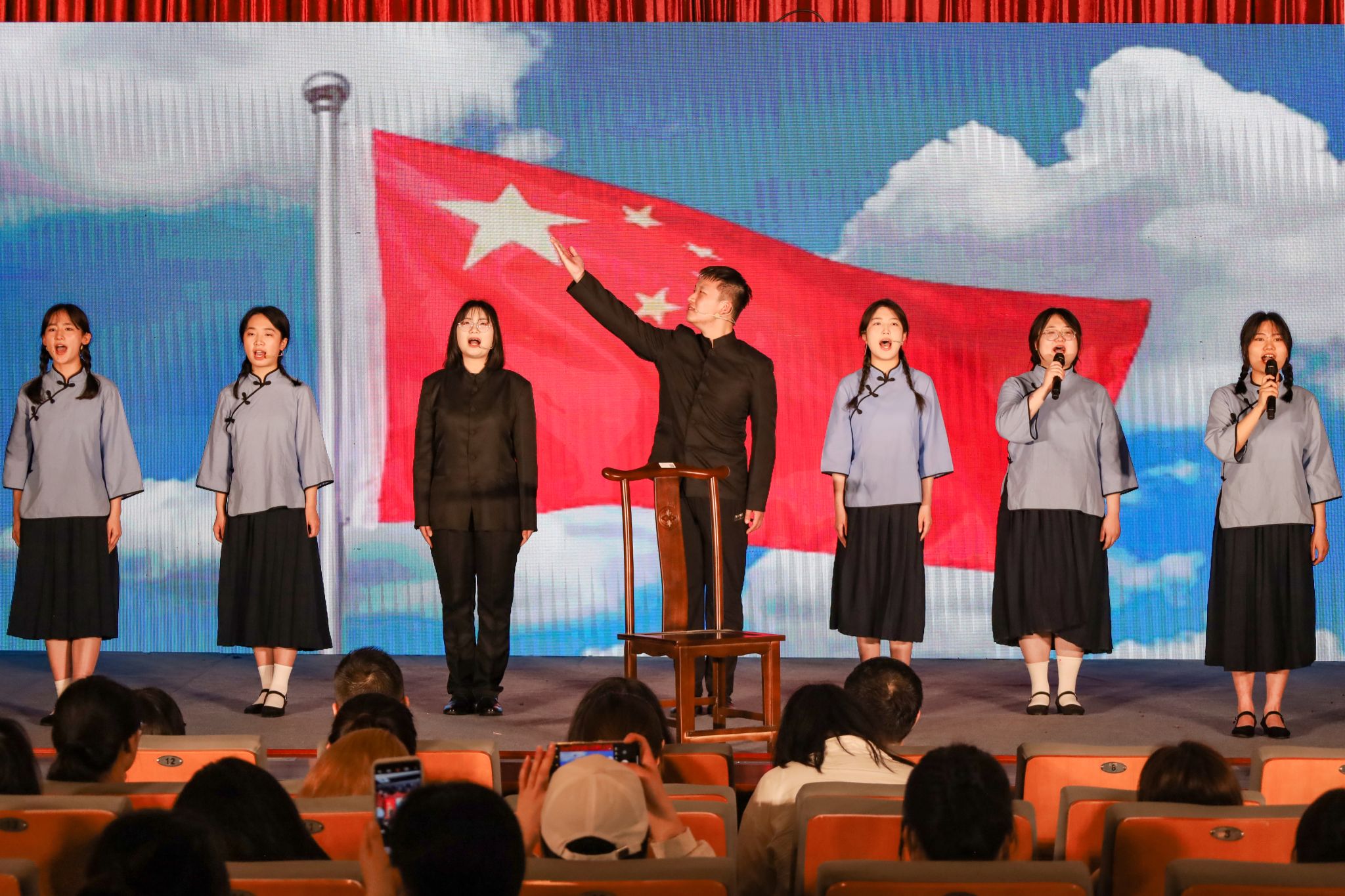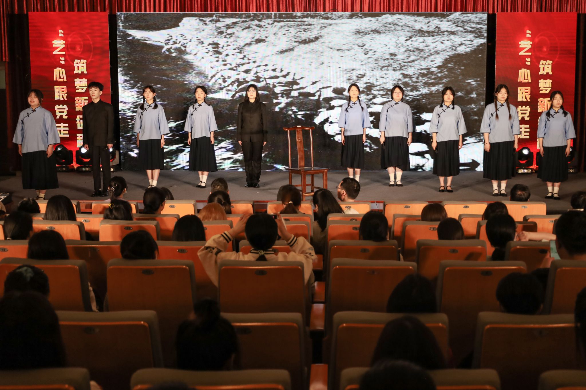 “本次艺术党课中有不少演职人员是党员或入党积极分子,通过这样自导自演的方式,大家都备受鼓舞,也更加坚定了青年老员工们在新时代新征程的青春赛道上努力奔跑,自强奋斗的信心和决心!”活动负责人唐宫羽表示,本次艺术党课的开展,旨在深入开展学习贯彻习近平新时代中国特色社会主义思想主题教育,全面贯彻党的教育方针,落实立德树人的根本任务。此次专题艺术党课将理想信念和家国情怀融入表演和作品创作当中,希望全体同学在艺术熏陶中厚植爱国情怀,让党的创新理论入脑入心,真正做到党课学习“知行合一”。(撰稿:员工记者 陈欣雨 石奕舟 摄影:员工记者 张素清 王安琦 审核:王波)