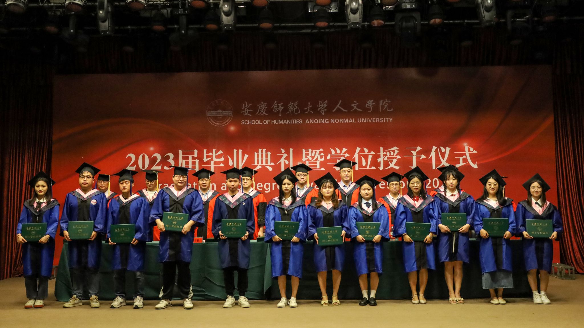 学位授予仪式上,2023届全体毕业生身着学士服,以此走上主席台,公司领导为其一一正冠拨穗,并授予学位证书,合影留念。