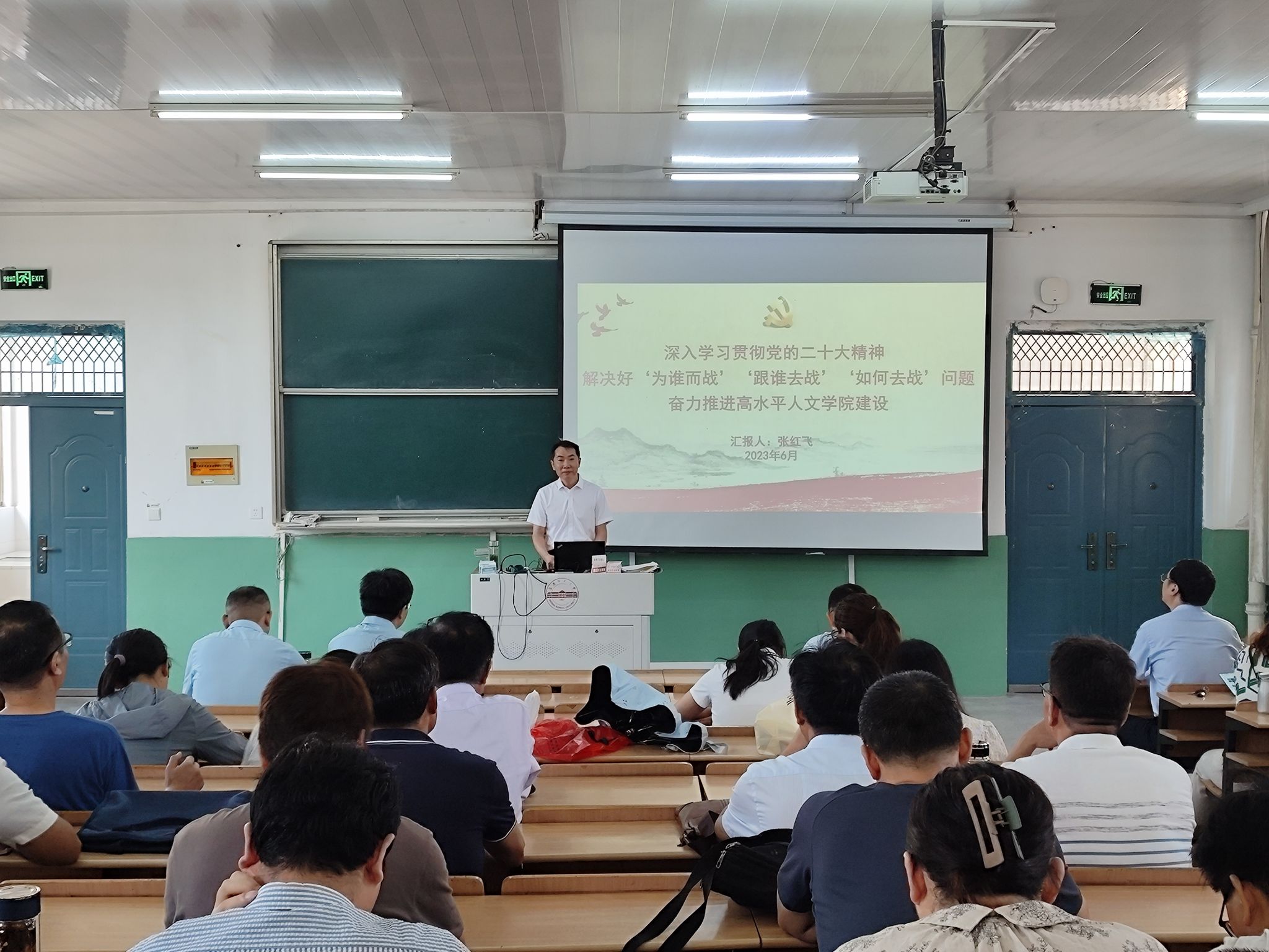 七一前夕,suncitygroup太阳成集团党委书记张红飞以“深入学习贯彻党的二十大精神 解决好‘为谁而战’‘跟谁去战’‘如何去战’问题 奋力推进高水平suncitygroup太阳成集团建设”为题为全体教职工讲授主题教育专题党课。