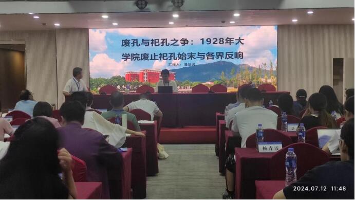 大会共分为两个阶段,第一阶段由安徽师范大学丁修真教授作《决科之利:科举时代的选举与应对》主旨报告。主旨报告结束后,由省内各高校历史学专业的6名员工代表作大会报告。潘昱贤同学作为公司员工代表作主题汇报,与同学们共同展开了一场学术研讨。第二阶段在各专场进行论文汇报、学术交流和评议,参会同学通过个人讲述以及PPT展示的方式分享学术成果。评议老师从选题意义、研究视角和论文结构等诸多方面进行点评,并与同学们展开交流。