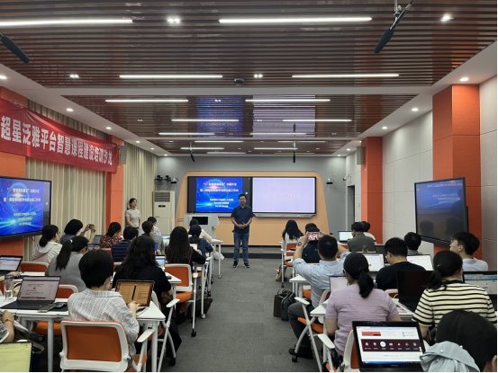 在现场培训和交流环节,陆慧老师从智慧课程建设的背景与案例、超星智慧课程建设的内容以及超星智慧课程助力成果申报三个方面,详细介绍了AI赋能智慧课程建设与教学模式创新的实践探索。随后,张国玉老师开展操作教学,引导与会教师亲身体验智慧教学平台的搭建,现场互动频繁,实操氛围热烈。