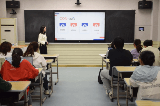 汇报结束后,评委冯慧敏老师在总结时肯定了本次验收答辩,“老员工创新创业训练计划项目是同学们锻炼自己、提高自己的一个很好的途径,今天各组的答辩准备都很充分,大部分同学都做出了实物成果,算是达到了预期的目标”,同时,冯老师也指出,“有的项目基于我们文科类专业做了调查报告、论文研究展示;有的项目是和理工科专业同学合作,成果展示形式需要借助一定的媒介,需要在展示形式这一方面稍加改进”。